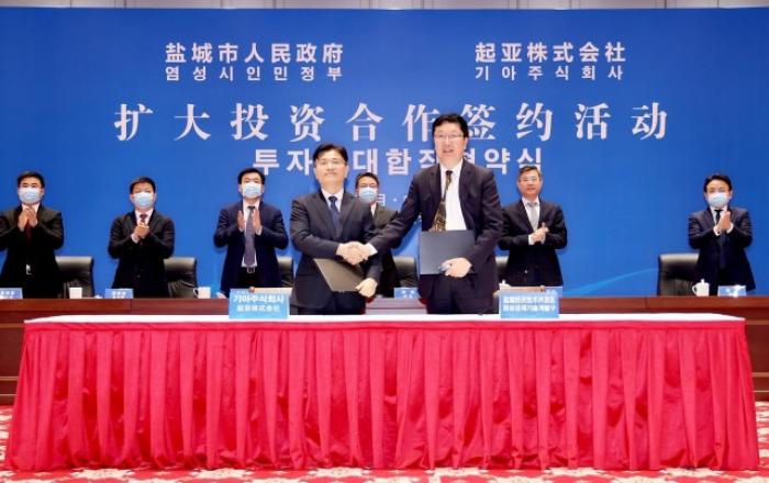 기아는 7일 중국 장쑤성(江苏省) 소재 옌청시(盐城市) 시정부 청사에서 ‘기아-옌청시 투자 확대 협약’을 체결했다고 밝혔다.온라인으로 진행된 협약식에는 송호성 기아 사장, 주우정 재경본부장, 류창승 중국법인장, 주빈(周斌) 옌청시장, 샤스쥔(夏思军) 옌청시 개발구 서기