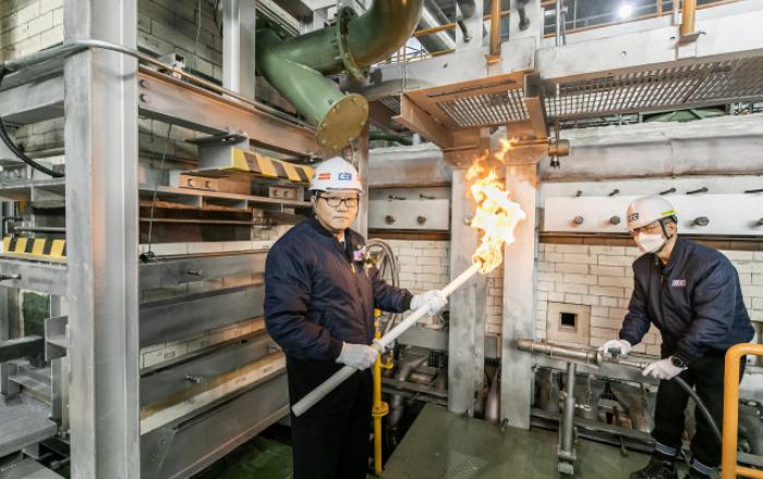 글로벌 응용소재화학기업 KCC가 그라스울 생산라인 증설에 박차를 가하며 무기단열재 시장 공략에 적극 나섰다. KCC는 7일 강원도 문막공장 그라스울 생산라인 1호기에 대한 증산 공사를 마치고 용해로에 새 불씨를 심는 화입식 행사를 가졌다. 이날 화입식에는 KCC 정몽진