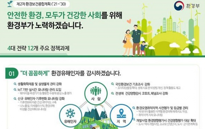 환경유해인자에 대한 능동적 감시 및 저감 관리, 민감·취약계층을 위한 환경보건 서비스 강화 등을 포함한 환경정책이 시행된다.환경부는 ‘안전한 환경, 모두가 건강한 사회’를 비전으로 제2차 환경보건종합계획(2021~2030년)을 올해부터 본격적으로 시행한다고 14일 밝혔