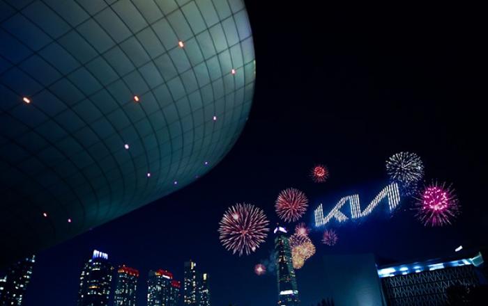 “기아자동차가 미래를 향한 변화의 첫 발걸음을 내딛습니다!”기아자동차는 6일(수) 신규 로고와 브랜드 슬로건을 공개하는 ‘로고 언베일링 행사’를 열었다.기아자동차 디지털 채널을 통해 진행된 언베일링 행사는 총 303대의 드론이 하늘에서 불꽃을 내뿜으며 새로운 로고를 그