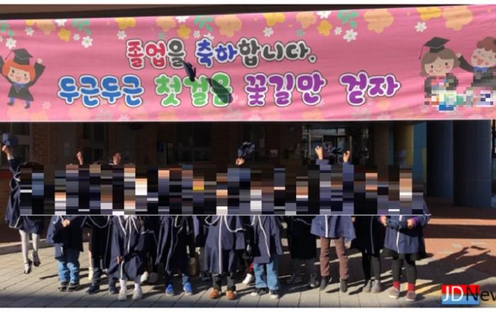 ▲ 졸업식 사진JD News 이용희 기자 = 충북 제천지역은 신종 코로나바이러스 감염증(코로나19) 확산방지를 위해 내년 1월 3일까지 매년 열리던 연말연시 행사를 강력히 제한하고 있는데 A 유치원이 대면 졸업식을 강행해 학부모들에게 질타를 받고 있다.제천 시내 A 유