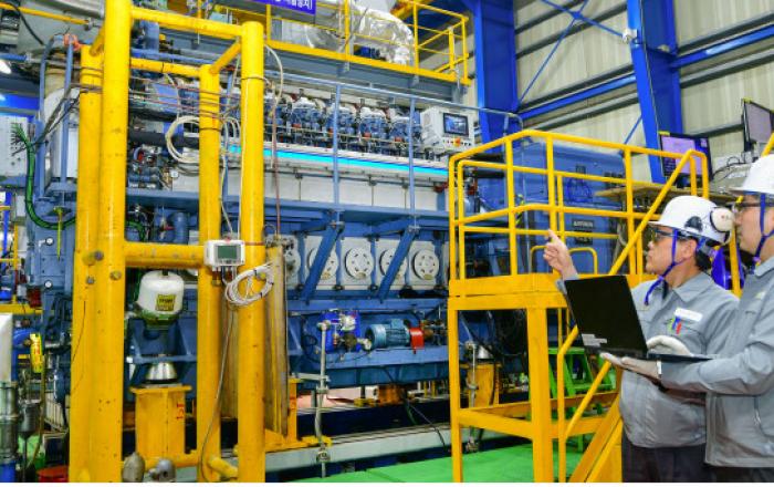 현대중공업그룹이 국내 최초로 LNG·수소 ‘혼소(混燒)엔진’ 개발에 성공했다. 한국조선해양과 현대중공업은 최근 독자 기술로 개발한 ‘1.5MW급 LNG·수소 혼소 힘센(HiMSEN)엔진’에 대한 성능 검증을 성공적으로 마쳤다고 22일 밝혔다. LNG