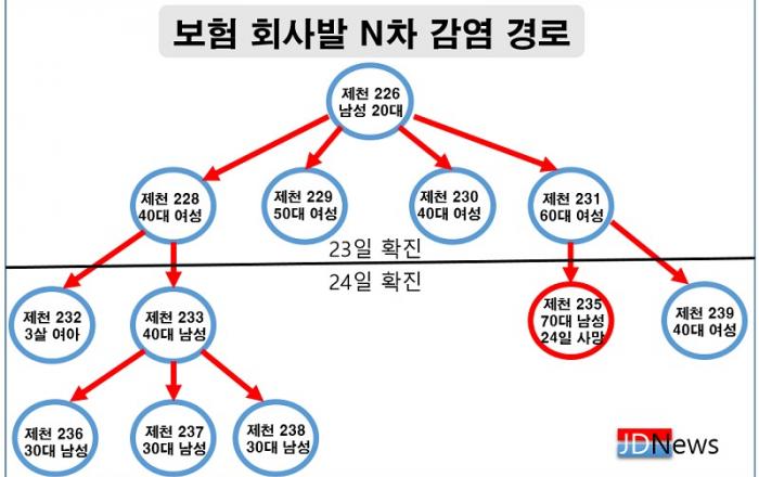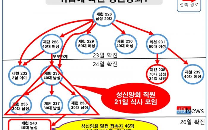 ▲제천시 홈페이지 코로나19 현황 참고(오차가 있을수 있음)JD News 이용희 기자 = 충북 제천서 보험회사발 신종 코로나바이러스 감염증(코로나19) N차 연쇄감염이 확산하고 있어 지역사회가 공포에 떨게 됐다.25일 제천시에 따르면 지난 23일,24일 이틀에