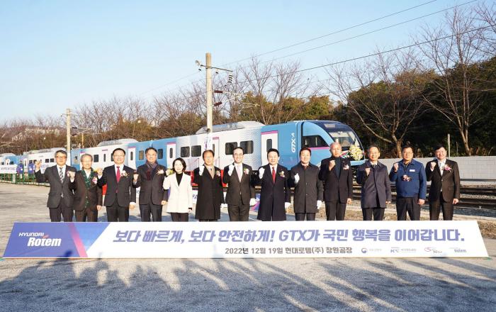 수도권 교통난 해소를 위한 GTX-A 전동차가 첫 선을 보였다.현대로템은 19일 창원공장에서 ‘수도권광역급행철도 GTX-A 출고식’을 개최했다고 밝혔다.이날 행사에는 원희룡 국토교통부 장관, 박완수 경상남도지사, 윤후덕·이용우·홍정민 국회의원, 홍남표 창원시장, 이동환