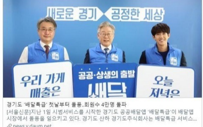 이재명 경기도지사가 온라인 사회관계망서비스(SNS)를 통해 ‘배달특급’ 홍보에 발 벗고 나서고 있다.이재명 지사는 지난 3일 자신의 사회관계망서비스 계정에 올린 ‘배달특급에 벌써 5만 명이 탑승하셨습니다’라는 글을 통해 “배달특급을 이용한 경제 살리기에 적극 동참해 달