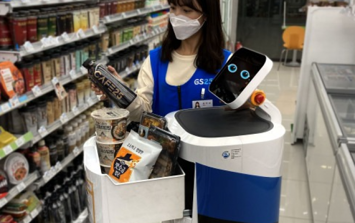 스마트폰으로 주문하면 AI 로봇이 배송하는 편의점 배달 서비스가 시작됐다.GS리테일이 운영하는 편의점 GS25가 LG사이언스파크 내 위치한 GS25 점포에서 스마트폰으로 주문받은 상품을 인공지능이 탑재된 로봇이 직접 배달해주는 서비스를 업계 최초로 시작했다고 30일 밝