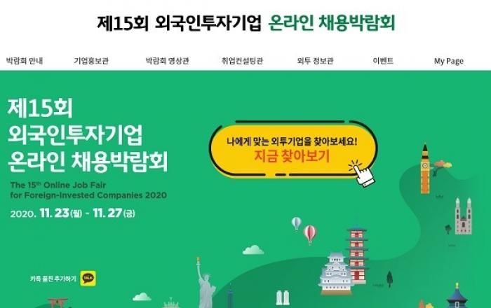 산업부가 주최하고 KOTRA, 서울시, 금융감독원이 공동 주관하는 ‘제15회 외투기업 채용박람회’가 온라인으로 23일부터 5일간 개최된다. 코로나19로 처음으로 온라인(www.jobfairfic.org/v20)으로 개최되는 이번 채용박람회는 포춘 글로벌 500대 기