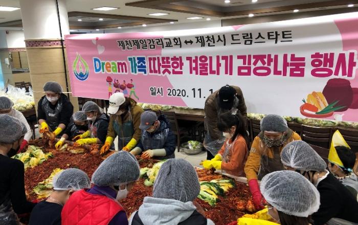 (제천=Jd News) 이용희 기자 = 제천시 드림스타트는 지난 14일 제천제일감리교회(담임목사 안정균)에서 드림스타트 20가구를 대상으로 김장나눔행사를 실시하였다. 이번 행사는 드림스타트 대상 가족 중 다문화, 부자가정 등 김장에 어려움이 있는 가정 20가구를
