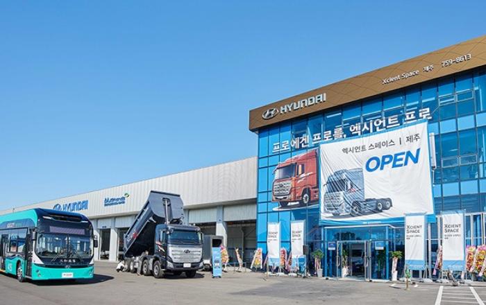 현대자동차가 동북아 해양산업의 허브인 제주도에 상용차 판매와 정비 등 고객 편의 서비스를 제공하는 현대 상용차 복합 거점 ‘엑시언트 스페이스 제주’(제주시 애월읍 평화로 소재)를 개소한다고 12일 밝혔다.현대자동차는 11일(수) 안동우 제주시장, 현대자동차 상용사업본부