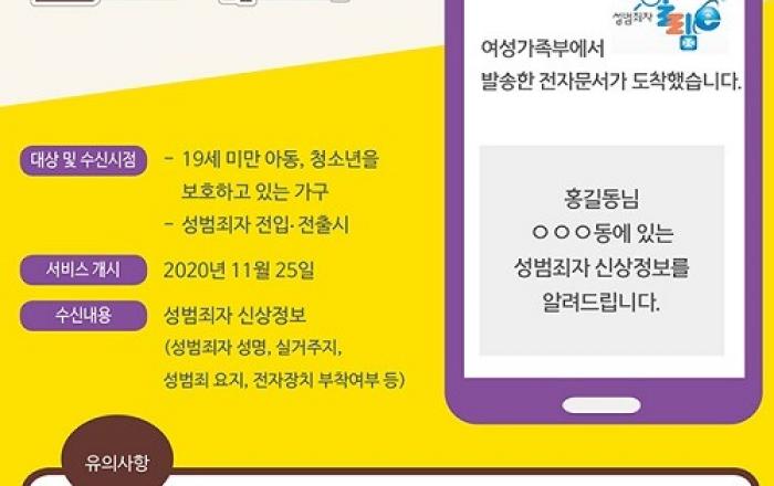 여성가족부는 오는 25일부터 성범죄자 신상정보 모바일 고지를 실시한다고 밝혔다.올해 말까지는 시범 운영기간으로 우편 고지와 모바일 고지를 병행해 실시하고, 내년부터는 모바일고지서 미열람자에 한해 우편고지서를 발송할 예정이다.그동안 성범죄자 신상정보는 19세 미만 아동·