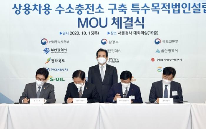 현대자동차가 정부와 지방자치단체, 에너지 업계 등과 손잡고 상용차 수소 인프라 구축에 앞장선다.현대자동차는 15일(목) 수소 상용차 보급 활성화에 기여하고자 정부 기관과 민간 기업이 함께 참여하는 ‘상용차용 수소충전소 구축·운영 특수목적법인(SPC, Special Pu