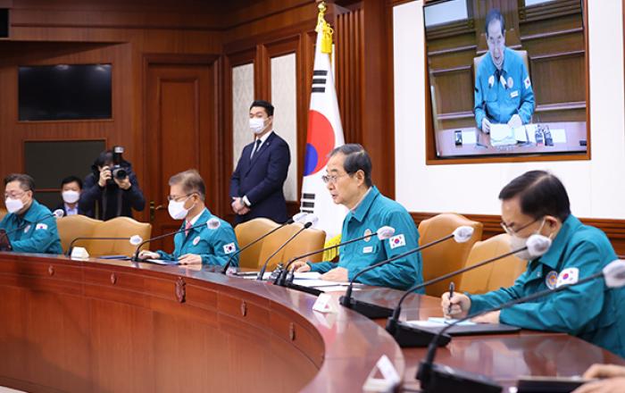 한덕수 국무총리는 9일 실내마스크 착용 의무 해제 시점과 관련 “구체적인 판단기준은 공개토론회와 자문위원회 논의를 거쳐 이달 중 중대본 회의를 통해 확정하겠다”고 밝혔다. 한 총리는 이날 서울 세종로 정부서울청사에서 열린 화물연대 집단운송거부 관계장관회의 및 코로