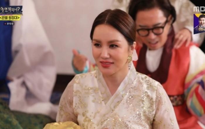 만능 엔터테이너 엄정화가 ‘환불원정대’ 멤버로 ‘신박기획’ 가족 모임에 참여한 가운데, 넘치는 예능감과 완벽한 비주얼로 매력을 십분 뽐내며 시청자들의 눈길을 사로잡았다.지난 3일 방송된 MBC ‘놀면 뭐하니?’에서 엄정화는 ‘환불원정대’ 멤버들과 추석을 맞아 함께 모임