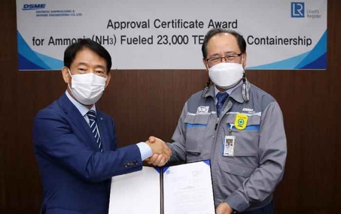 대우조선해양이 친환경 선박 분야에서 세계 최고 수준의 기술력을 앞세워 새로운 시장 개척에 나섰다.대우조선해양은 세계적 선급인 영국 로이드선급(LR)으로부터 23,000TEU급 암모니아 추진 초대형컨테이너선에 대한 기본인증(Approval in Principle)을 획득