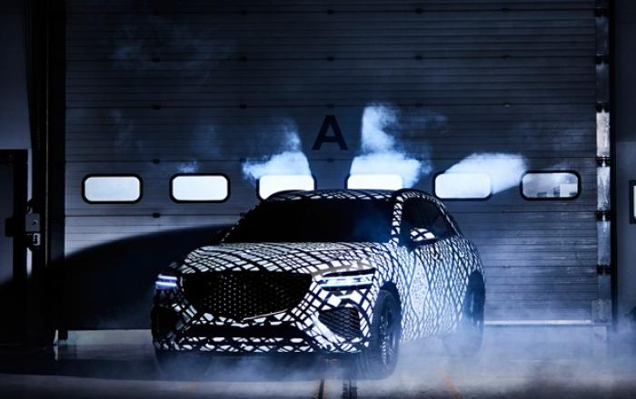 제네시스는 29일(화) 위장 필름(카무플라주, Camouflage)으로 감싼 GV70 티저 이미지를 최초로 공개했다.GV70는 제네시스 라인업의 다섯 번째 차량으로, 후륜구동 기반의 고급 중형 SUV 모델이다. 스포티하고 매끄러운 윤곽이 만들어낸 역동적인 외장 디자인이