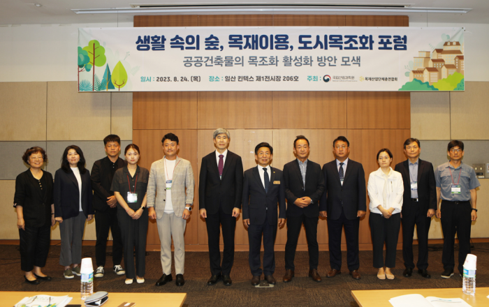 산림청 국립산림과학원은 지난 24일(목)에 일산 킨텍스에서「생활 속의 숲, 목재이용, 도시목조화 포럼」을 개최했다고 밝혔다. 이번 포럼은 국립산림과학원과 목재산업단체단체총연합회가 공동 주관하여 ‘공공건축 및 중대형 목조건축의 활성화 방안’ 주제로 진행되었다.