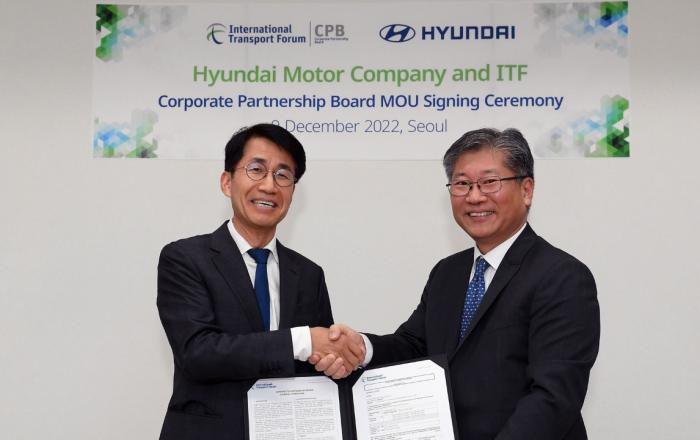 현대자동차가 경제협력개발기구(OECD) 산하 ‘국제교통포럼(International Transport Forum·ITF)’과 손잡고 미래 모빌리티 선도 기업의 역할 강화에 나선다. 현대차는 9일 양재동 본사에서 김동욱 현대차그룹 부사장, 김영태 OECD 국제교통포럼 사