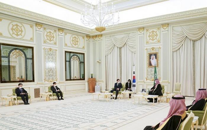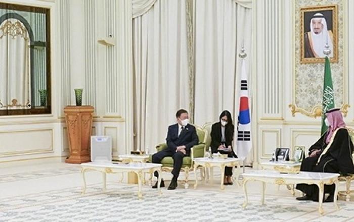 사우디아라비아를 방문 중인 문재인 대통령은 18일(현지시간) 모하메드 빈 살만 사우디 왕세자와 리야드 야마마 궁에서 회담을 갖고, 수교 60주년을 맞은 양국 간 우호·협력 관계 발전을 평가하고 협력 지평을 한층 확대하기 위한 실질 협력 증진 방안에 대해 협의했다.문 대