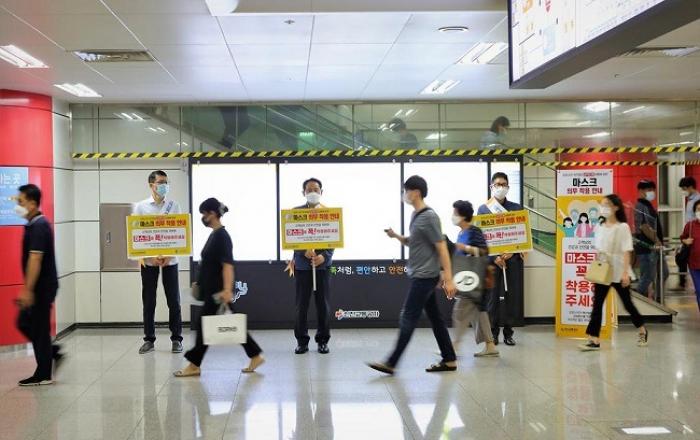 인천교통공사는 21일 인천 1·2호선 5개 환승역(부평, 원인재, 검암, 주안, 인천시청)에서 지하철 이용 시 마스크 착용 의무를 홍보하는 캠페인을 전개하였다.최근 서울 지역의 일부 교회와 지난 광화문 집회에서 확산된 코로나19가 수도권을 중심으로 전국으로 확산되고 8