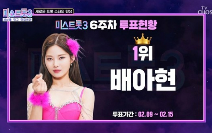 '미스트롯3' 배아현이 눈부신 활약을 이어가고 있다. 배아현은 현재 방송 중인 TV CHOSUN '미스트롯3'에서 우승 후보다운 저력을 보여주고 있다. 배아현은 '미스트롯3'를 통해 '조약돌 사랑', '모란동백' 등의 무대를 선보이며 이목을 집중시켰다.