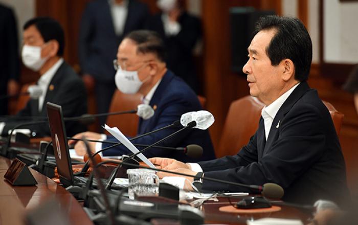 정세균 국무총리는 18일 “어쩌면 지금이 코로나19의 가장 위험한 잠복기일지도 모른다”며 “모두 한마음으로 다시금 방역의 고삐를 죄어주시길 간곡히 당부드린다”고 호소했다. 정 총리는 이날 서울 세종로 정부서울청사에서 열린 국무회의를 주재한 자리에서 “지금 코로나19의