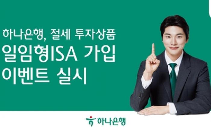 하나은행은 다음 달 29일까지 '일임형 ISA 상품 가입 이벤트'를 실시한다고 밝혔다. ISA(개인종합자산관리계좌)는 일명 '만능통장'으로 불리며 하나의 계좌로 예·적금, 펀드 등 다양한 금융상품을 운용하면서 절세혜택도 받을 수 있는 상품으로, '일임형 ISA'의