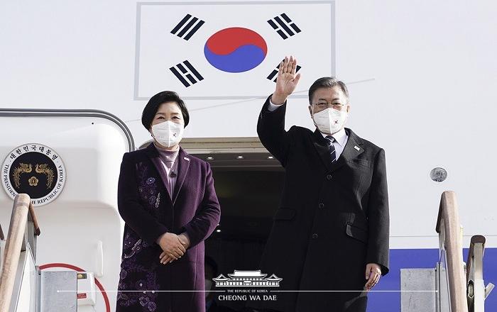 중동 3개국 순방 첫 방문국인 아랍에미리트(UAE)를 방문한 문재인 대통령은 16일 오전(현지시간) 첫 공식 일정으로 두바이 시내 한 호텔에서 열린 ‘한-UAE 수소협력 비즈니스 라운드테이블’ 에 참석했다.이 행사는 양국 간 수소 협력 기반 구축을 목적으로 한국무역협회