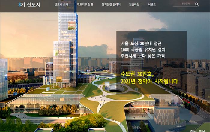 정부가 추진 중인 3기 신도시의 모습을 미리 보여주고 청약 일정도 휴대전화 문자로 알려주는 홈페이지가 개설된다.▲ 3기 신도시 홈페이지 화면 국토교통부는 6일 ‘3기 신도시 홈페이지(http://www.3기신도시.kr)를 개설했다고 밝혔다. 3기 신도시는 남양주