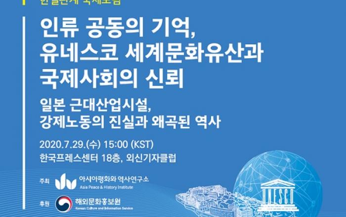 문화체육관광부 해외문화홍보원은 일본이 군함도 전시관인 산업유산정보센터에 역사적 왜곡을 한 것에 대해 국제사회와 공조해 대응 방안을 모색해 나간다. 문체부는 해문홍이 후원하고, 아시아평화와역사연구소가 주최하는 ‘인류공동의 기억, 유네스코 세계문화유산과 국제사회의 신뢰’