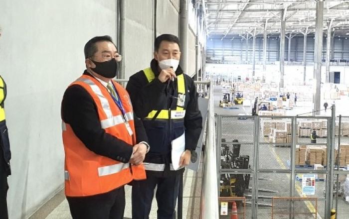 한국무역협회 구자열 회장이 12일 인천공항에 위치한 대한항공 화물터미널을 찾아 수출 물류 현장을 점검하고 중소기업의 물류 애로를 청취했다.구 회장은 이날 "최근 주요 항로에서 화물스페이스 부족 및 운임 급등의 조짐이 보이는 가운데 '항공화물 긴급수출 물류 지원사업'을