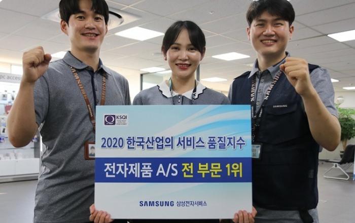 삼성전자서비스가 한국능률협회컨설팅(KMAC)이 주관하는 ‘2020 한국산업의 서비스 품질지수(KSQI)’ 조사에서 가전 A/S 10년, 휴대전화 A/S 9년 연속 1위에 선정되며 전자제품 A/S 전 부문 1위를 석권했다.‘KSQI(Korean Service Qualit