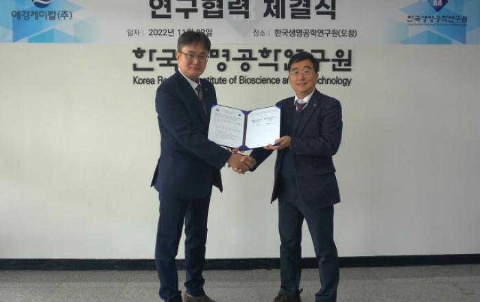 애경케미칼과 한국생명공학연구원이 ‘바이오플라스틱 소재 개발’을 위해 손을 잡았다.애경케미칼(대표 표경원)과 한국생명공학연구원(원장 김장성)은 23일 친환경 바이오 화학 소재 분야 공동연구 추진을 위한 업무 협약(MOU)을 체결했다고 밝혔다.바이오플라스틱은 생물공학 기반
