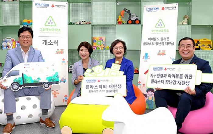 현대자동차그룹이 색다른 방법으로 최근 사회적 문제가 되고 있는 플라스틱 폐기물 감축 활동에 나선다.현대자동차그룹은 14일 경기도 안양시 소재 현대자동차 안양사옥 4층에 마련된 사회적협동조합 ‘그린무브공작소’ 개소식에 참석해 폐 플라스틱 장난감 순환 지원 사업을 추진한다