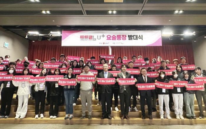 LG유플러스는 한국장애인재활협회와 장애가정 청소년들의 자산형성을 돕는 ‘두드림 U+요술통장’ 14기 발대식을 열었다고 26일 밝혔다. LG유플러스가 주최하고 한국장애인재활협회가 주관하는 ‘두드림 U+요술통장’은 2010년부터 매년 장애인가정의 청소년을 선