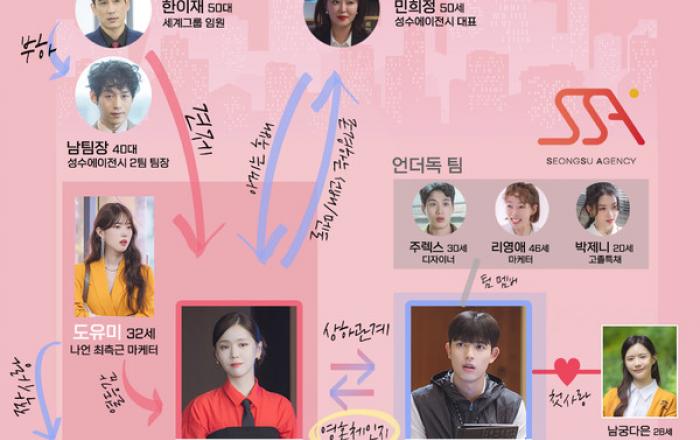 LG유플러스의 ‘STUDIO X+U’가 제작하는 새로운 MZ 로맨스릴러 드라마 ‘브랜딩인성수동’이 심상찮은 포스의 인물 관계도를 공개했다. 2월 5일 첫 공개되는 ‘브랜딩인성수동(기획: STUDIO X+U, 제작: STUDIO X+U, STUDIO VPLUS