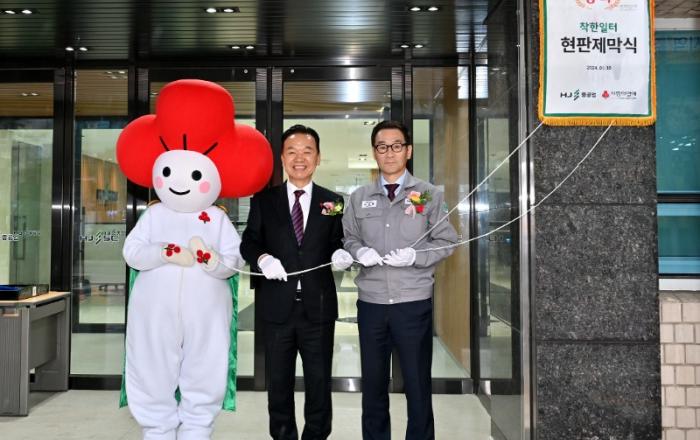 HJ중공업(조선부문 유상철 대표)이 부산사회복지공동모금회로부터 ‘더 베스트(The Best) 착한일터’로 선정되는 영예를 안고 18일 현판식을 가졌다. 이날 행사는 HJ중공업 유상철 대표와 부산사회복지공동모금회 최금식 회장, 박선욱 사무처장 등관계자들이 참석한 가운데