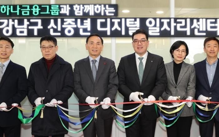 하나금융그룹은 강남구청과 지난 17일 오후 지하철 7호선 강남구청역에 '신중년 디지털 일자리 센터'를 건립하고 개관식을 진행했다고 밝혔다. 국내 최초로 지방자치단체인 강남구청과 민간 금융회사인 하나금융그룹이 협업해 세운 '신중년 디지털 일자리 센터'는 재취업 등 경