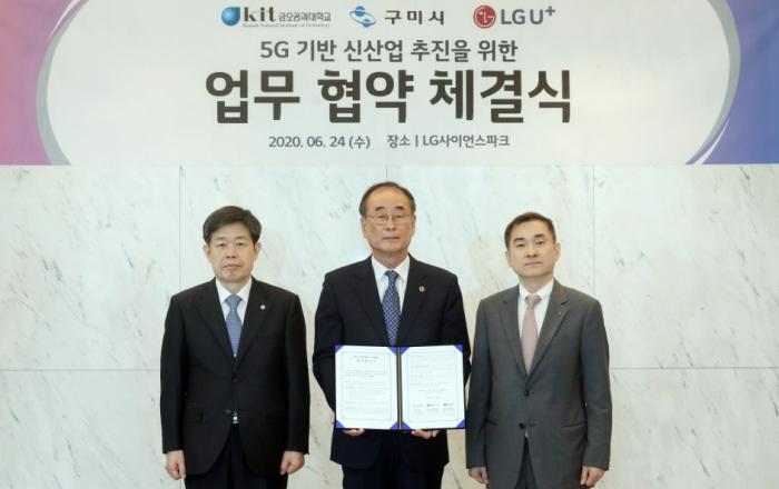 LG유플러스는 구미시(시장 장세용), 금오공과대학교(총장 이상철, 이하 금오공대)와 손잡고, '5G기술 기반의 스마트시티·팩토리 인프라 구축을 위한 협력'에 나선다고 24일 밝혔다. 이를 위해 3개 기관은 서울 LG유플러스 마곡사옥에서 하현회 LG유플러스 부회장, 장세