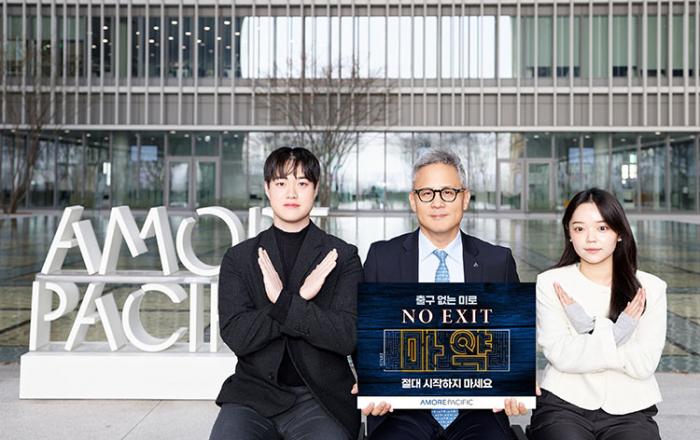 김승환 아모레퍼시픽 대표이사가 마약 근절을 위한 '노 엑시트(NO EXIT)' 캠페인에 동참했다. '노 엑시트' 캠페인은 지난 4월부터 경찰청과 한국마약퇴치운동본부가 마약 중독에 대한 경각심을 일깨우고 마약 범죄의 예방과 근절을 위해 펼친 범국민적 운동이다.