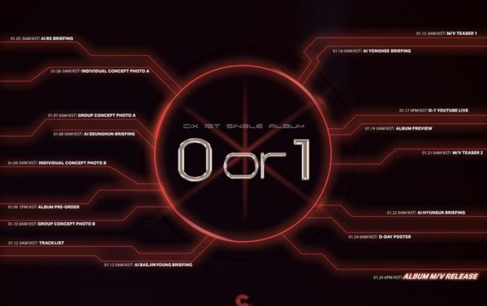 그룹 CIX(씨아이엑스)가 첫 싱글 '0 or 1'으로 돌아온다. CIX(BX, 승훈, 배진영, 용희, 현석)는 오는 24일 오후 6시 각종 온라인 음원 사이트를 통해 첫 번째 싱글 앨범 '0 or 1'(제로 오어 원)을 발매한다. 오늘(4일) 0시 CIX 공식
