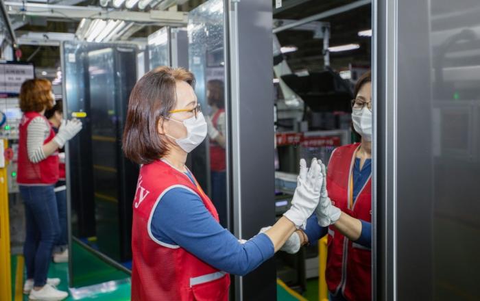 LG전자 직원들이 25일 경남 창원사업장에서 최대 6벌의 옷을 한 번에 관리할 수 있는 대용량 의류관리기 '트롬 스타일러 플러스'를 생산하고 있다. 대표적인 스팀 가전인 트롬 스타일러가 필수가전으로 자리잡으면서 가족들의 옷을 한 번에 관리할 수 있는 대용량 제품이 인기