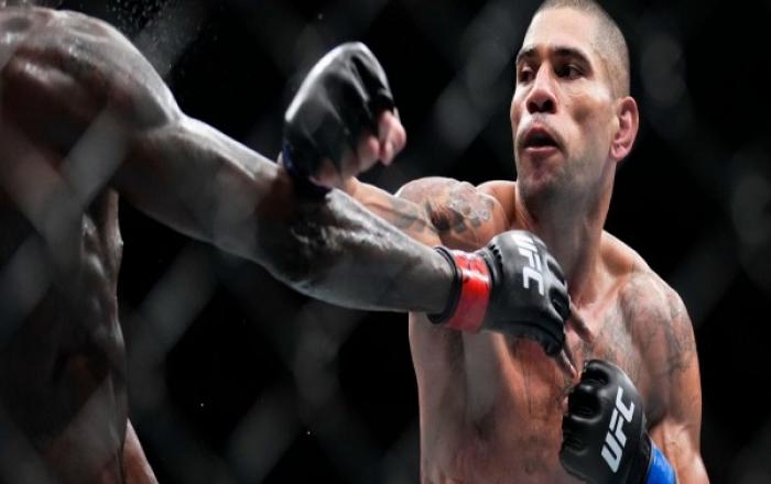 ▲ 도전자 알렉스 페레이라(35, 브라질)가 UFC 미들급 챔피언 이스라엘 아데산야(33, 나이지리아-뉴질랜드)에게 오른손훅을 날리고 있다. 무패의 UFC 미들급 챔피언 이스라엘 아데산야(33, 나이지리아-뉴질랜드)가 도전자 알렉스 페레이라(35, 브라질)에게 TKO