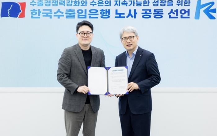 한국수출입은행(이하 '수은') 노사가 22일 수은 노동조합 창립 41주년을 기념해 수출위기 극복을 위한 '노사 공동 선언문'을 채택했다. 윤희성 수은 행장과 박요한 수은 노조 위원장은 이날 수출경쟁력 강화와 수은의 지속가능한 성장을 도모하기 위해 노사 공동 선언문
