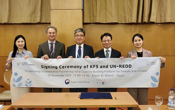산림청은 지난 6일 이집트 샤름 엘 셰이크에서 개막한 유엔기후변화협약 제27차 당사국총회(COP27)에서 지난 제15차 세계산림총회 계기로 발표했던 3건의 신규 국제산림협력 성과 사업에 관해 각 기구들과 협력 행사를 개최했다고 11일 밝혔다. 세 건의 협력사업은 ▲유