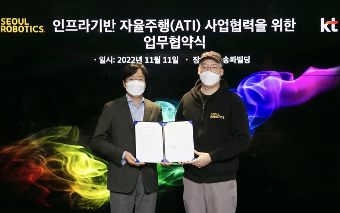 디지털 플랫폼 기업 KT가 3D 라이다(LiDAR) 자율주행 소프트웨어 전문기업인 서울로보틱스(대표 이한빈)와 인프라 기반 자율주행(이하 ATI, Autonomy Through Infrastructure) 사업을 공동으로 추진한다고 14일 밝혔다. &n