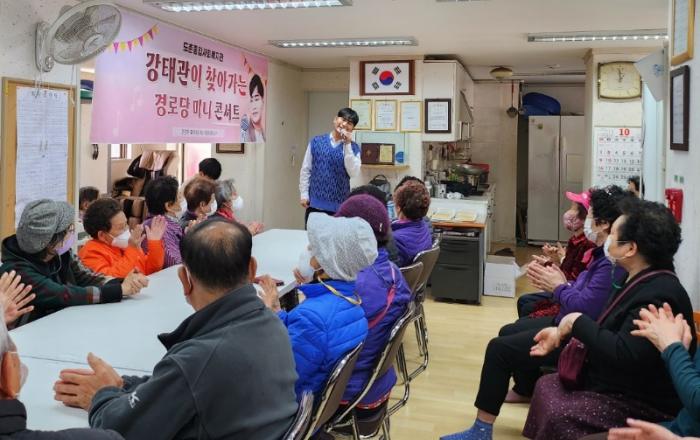 성남도촌종합사회복지관(관장 이종민)은 트로트 가수 강태관과 함께하는 “찾아가는 미니 콘서트를 진행한다. “찾아가는 미니 콘서트”는 10월부터 시작하여 12월까지 3개월 동안 중원구 내 경로당 총15개소를 방문할 예정이다. 성남시 도촌종합사회복지관이 주최하고 넥스타엔