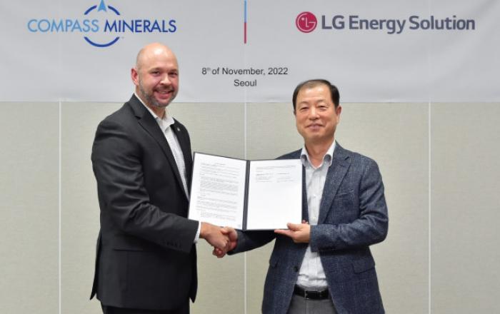 LG에너지솔루션이 미국 인플레이션 감축법(IRA·Inflation Reduction Act) 선제 대응을 위해 미국 내 배터리 양극재의 핵심 소재인 탄산리튬을 확보했다.LG에너지솔루션은 최근 여의도 파크원에서 미국 컴파스 미네랄(Compass Minerals)사와 탄산