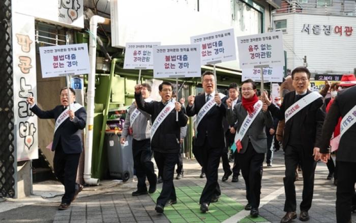 한국마사회는 지난 8일(금) 영등포 장외발매소에서 사행산업통합감독위원회(위원장 오 균), 영등포구(구청장 최호권), 영등포경찰서(서장 김찬수)와 합동으로 기초질서 계도 캠페인을 진행했다. 이번 캠페인은 특히 불법대출 홍보·이용 및 음주 경마관람 근절 계도를 중심으로