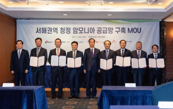 롯데그룹 화학군(롯데케미칼, 롯데정밀화학)이 한국석유공사, 남동발전, 서부발전, 포스코, SK가스, 삼성엔지니어링과 MOU를 맺고 서해권역 청정 암모니아 공급망 구축 사업을 추진한다.롯데그룹 화학군을 포함한 7개사는 9일 서울 소공동 롯데호텔서울에서 ‘서해권역 청정 암