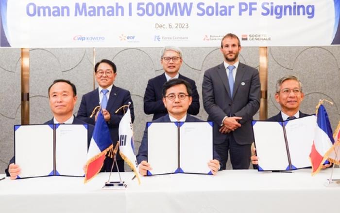 한국수출입은행(이하 '수은')은 한국서부발전(이하 '서부발전')이 수주한 오만 마나1(Manah1) 태양광 발전 사업에 PF방식으로 총 1.7억 달러를 제공한다고 7일 밝혔다. 윤희성 수은 행장은 6일 아랍에미레이트 두바이에서 박형덕 서부발전 사장, 브루노 벤싸송(